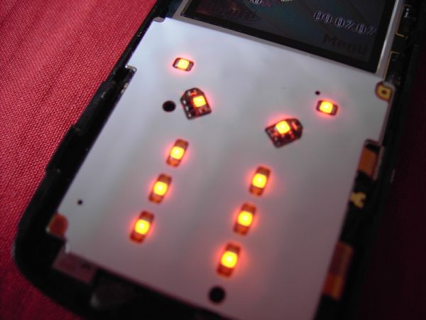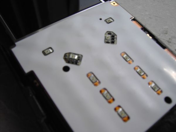 SMD Leds kommen da rein... aha :wink: ...Beispielweise diese http://www.leds.de/product_info.php?info=p19_Superhelle-SMD-LED-blau-80mcd-120--0805-3-4V.html 0805 oder doch die 0603 ??? 0603er.....kannste evtl. probleme beim drücken der tasten bekommen... hm das hoffe ich doch nicht :? könntest du di...
