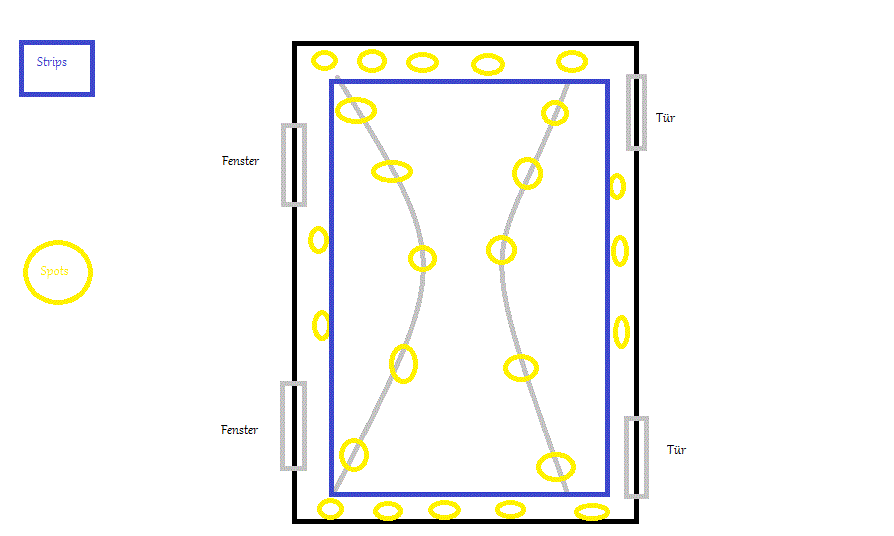 Die Spots die um die Wand laufen baue ich bestimmt noch in die Decke ein.