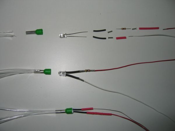 Die Idee mit der Verbindung von Glasfaser und LED mit den aderendhülsen is cool...