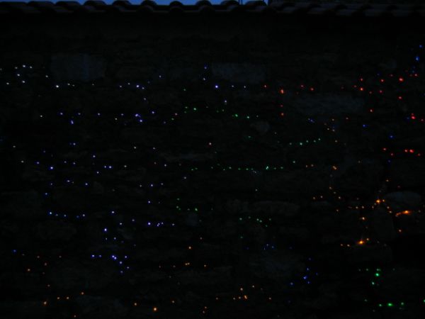 So eine Wand von 4x3 Meter habe ich 80 LED verarbeitet und 100 Meter Glasfasern.