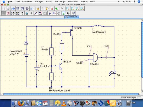 hmm, hat die Solarzelle (in der Schaltung V2 2,4V) in diesem Fall einen einfluss bei Dunkelheit?