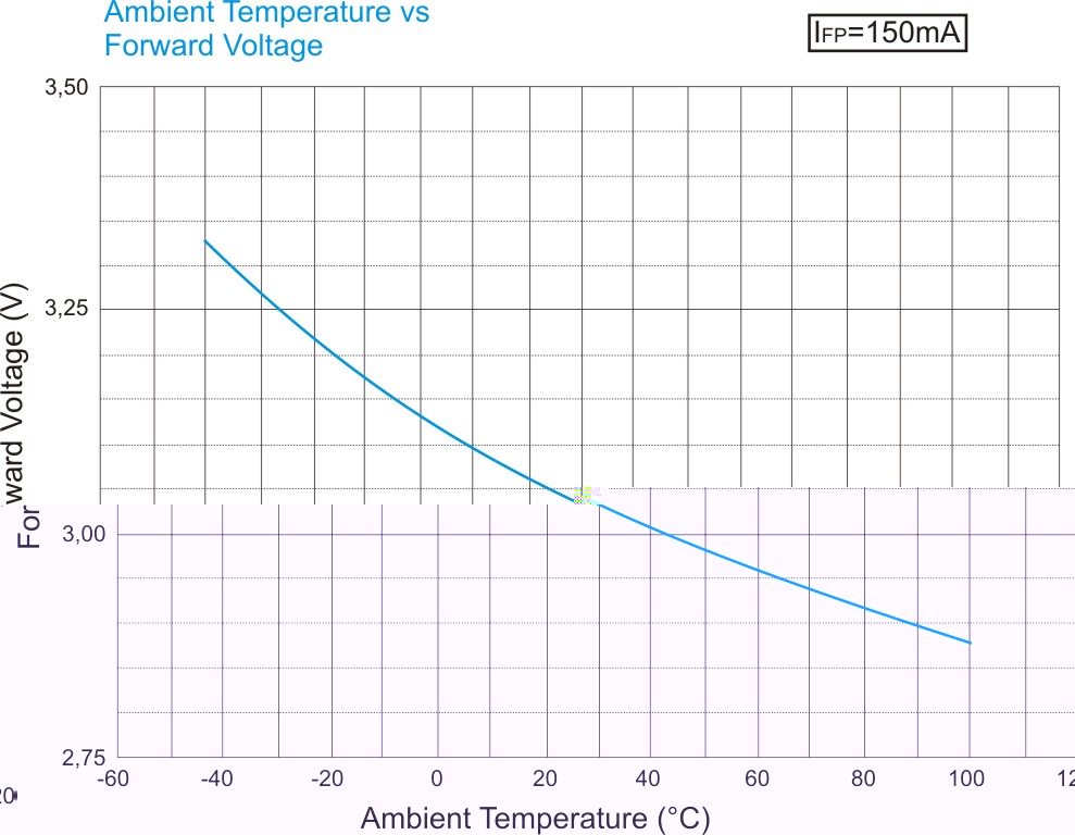 Das Diagramm aus dem Herstellerdatenblatt zeigt aber die Ambient Temperatur vs Forward Voltage, bei korrekter Montage also die Kühlkörpertemperatur über der Vorwärtsspannung.