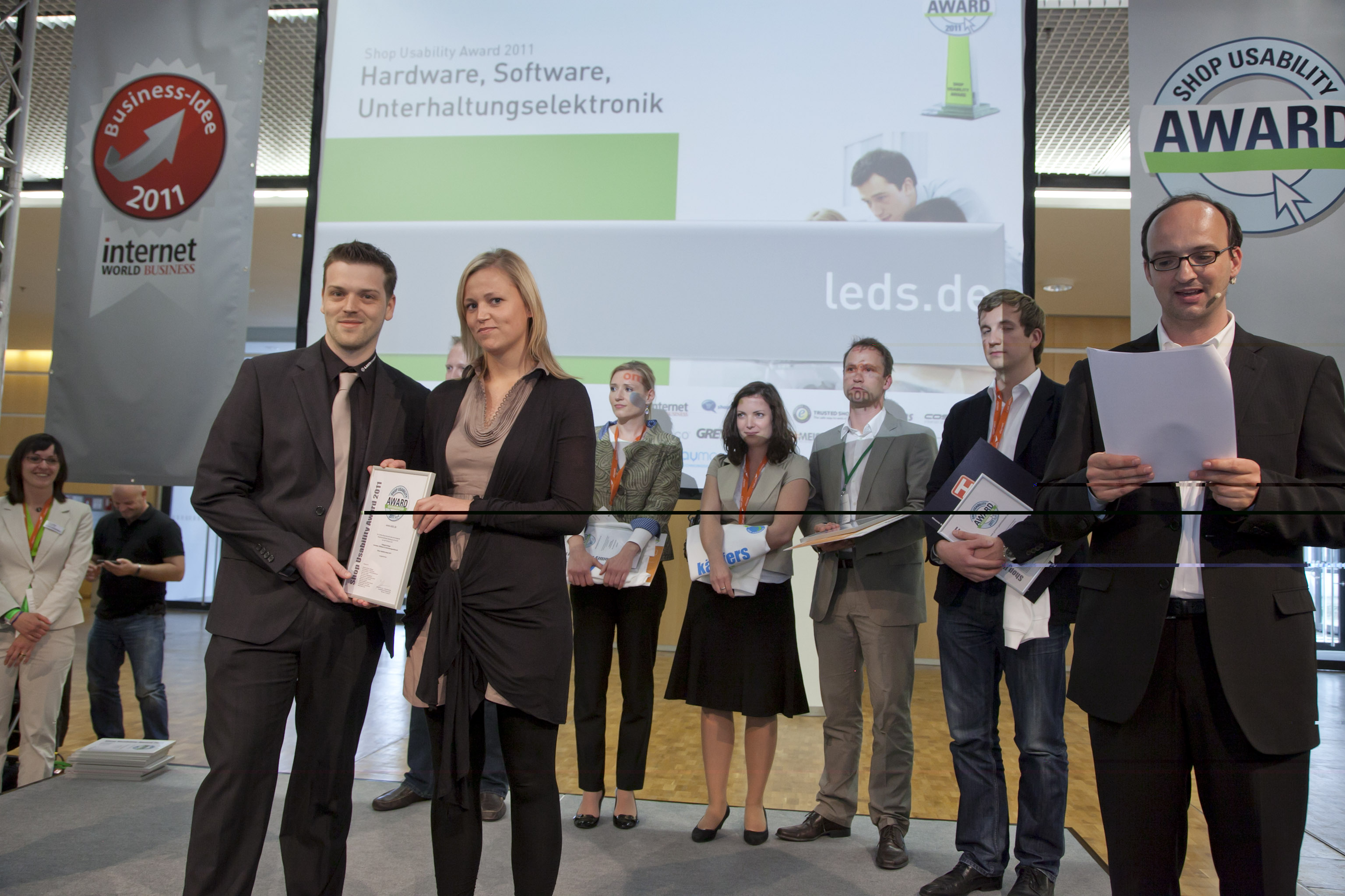 Auf der heutigen Preisverleihung wurde LEDs.de zum Kategoriesieger des Shop Usability Awards. Damit räumte unser Onlineshop einen zweiten begehrten Internetpreis ab. Er wurde am 12.04.2011 im Rahmen der Internet World Fachmesse verliehen und zeichnet die benutzerfreundlichesten Shops aus.
