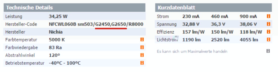 Lichtquelle: Nichia-COB-NFCWL060B, neutralweiß (7,99€):