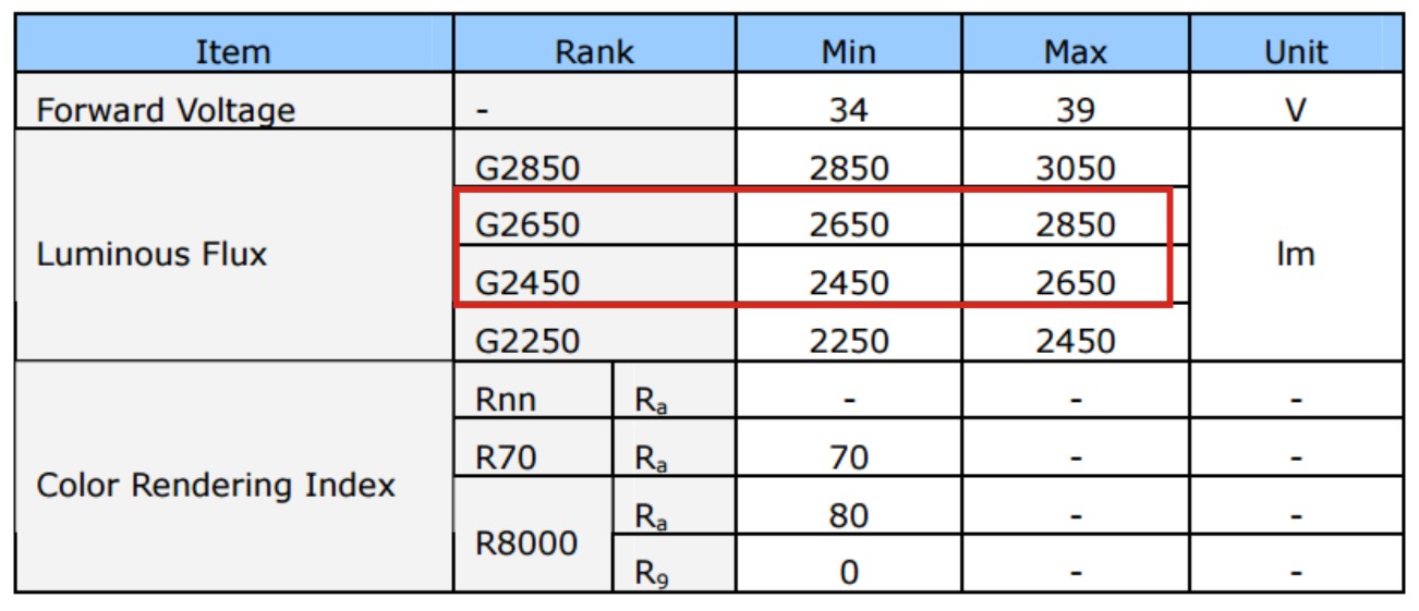 Eine Beleuchtungsstärke von 6800 lux entspricht laut Umrechnungswerkzeug (bei 30 cm Abstand COB-Modul zu Tischplatte) eher einem Lichtstrom von 1900 lm. Sieht also ganz so aus, als hätte ich ein COB-Modul mit G2650er-Binning erwischt. :D