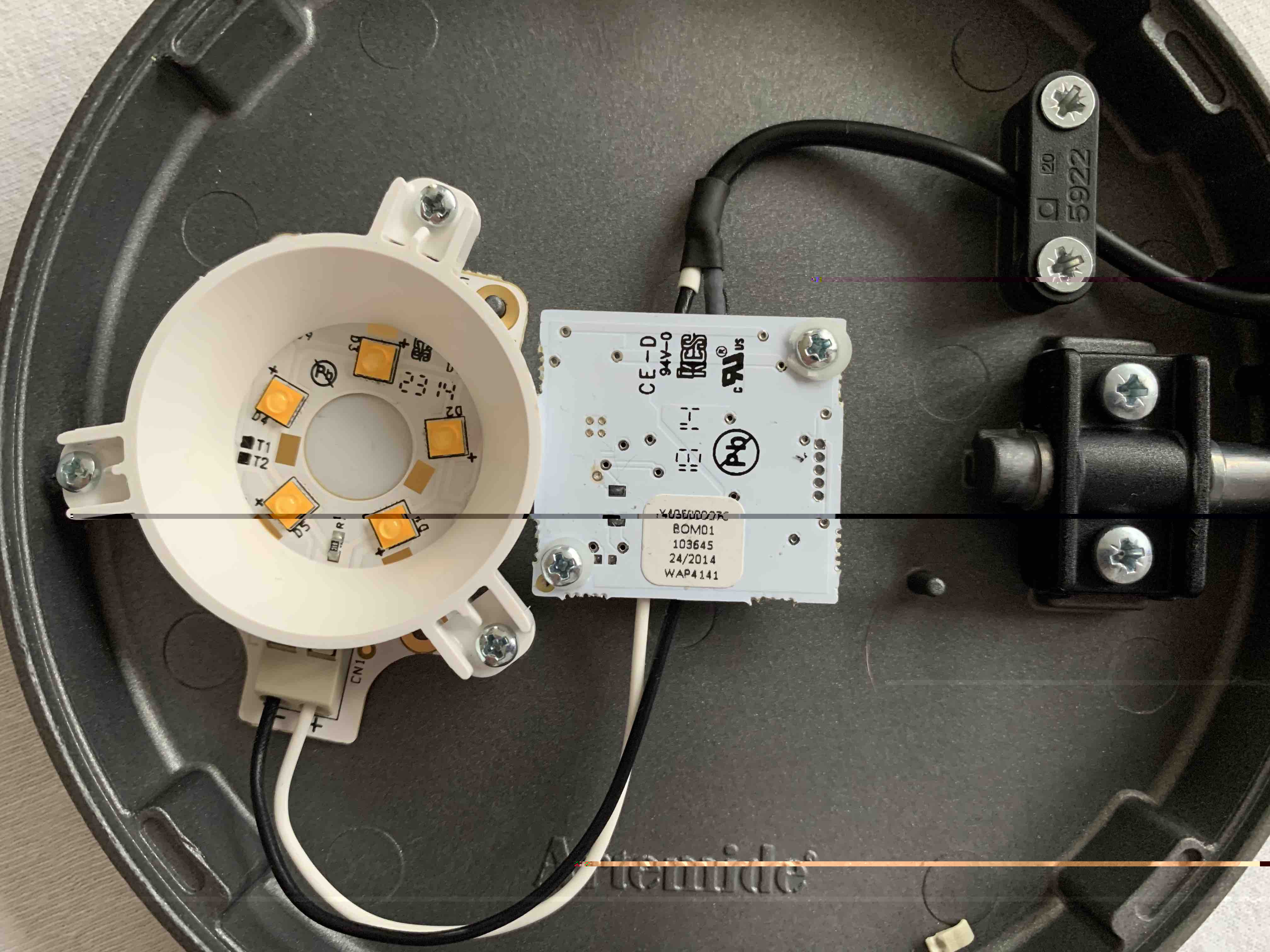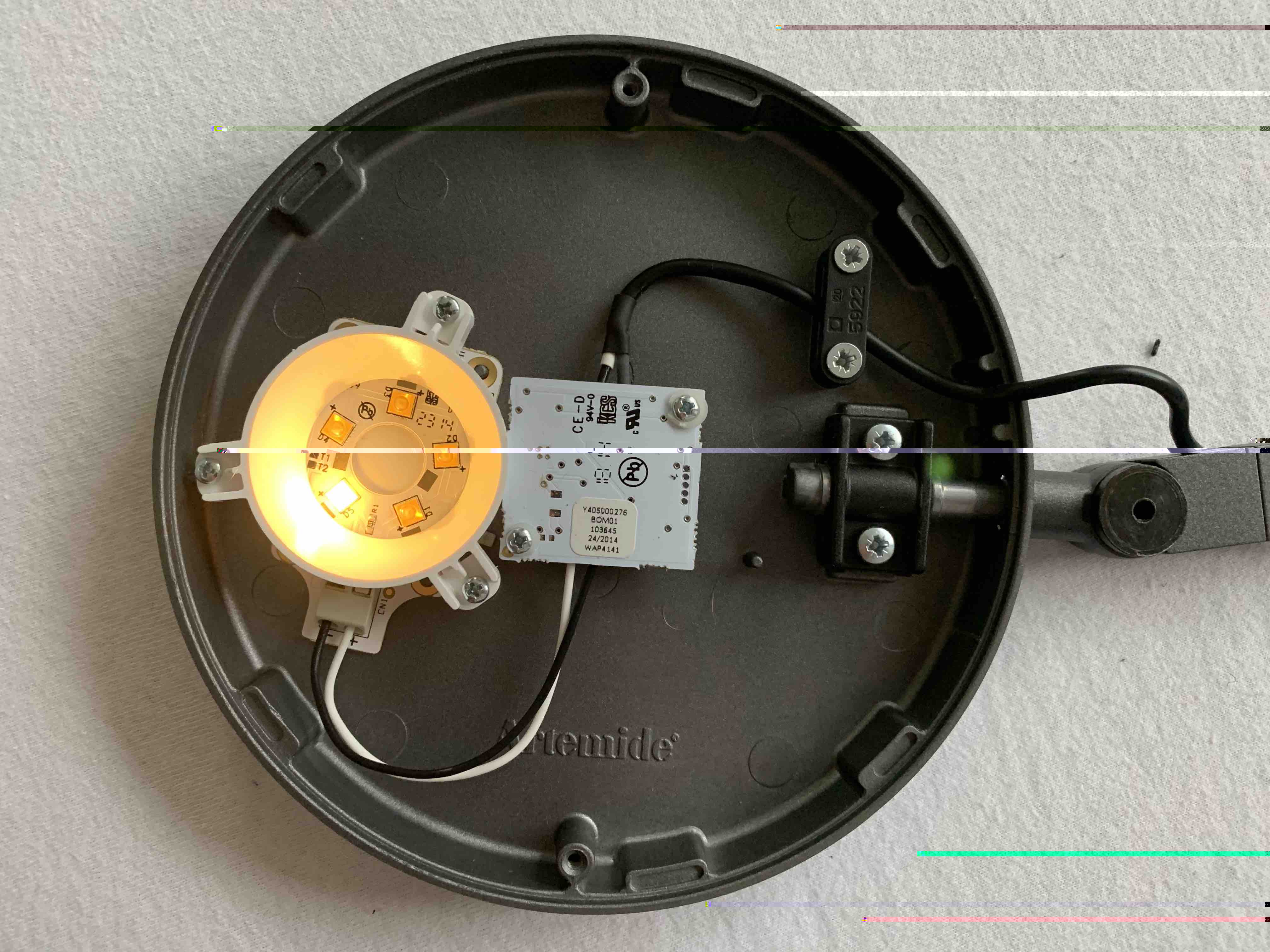 Ich habe mich dann bei dem offiziellen Reparaturpartner von Artemide erkundigt, was eine Reparatur kosten würde und man hatte mir gesagt, dass unter Anderem die LED Einheit möglicherweise defekt wäre (Fehlerbeschreibung folgt). Diese alleine sollte jedoch schon 60€ kosten. Hinzu wären Arbeitsaufwand, Versand und ein neuer Tischfuß gekommen, womit ich die Leuchte als wirtschaftlichen Totalschaden abgeschrieben hatte.