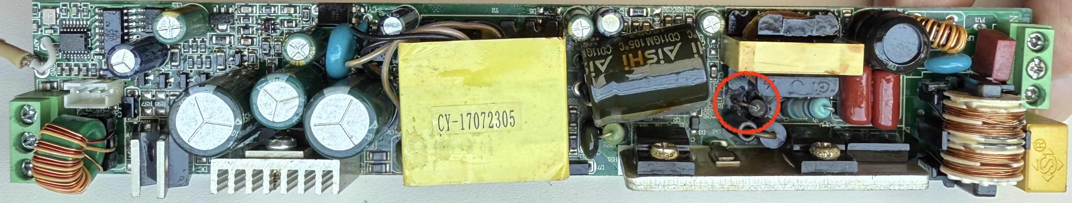 Ich sitze hier vor den Teilen einer großen runden LED-Deckenlampe (80cm), bei der ein Bauteil im LED Driver explodiert ist. Weder für die Modellnummer des LED-Treibers noch für die der LED-Module in der Lampe ist online irgendwas zu finden. Die Lampe ist ca. 5 Jahre alt, war dimmbar und konnte zwischen verschiedenen (im weitesten Sinne weißen) Farbtemperaturen umgeschaltet werden. Ein Empfänger für die Funkfernsteuerung war im LED Driver integriert.