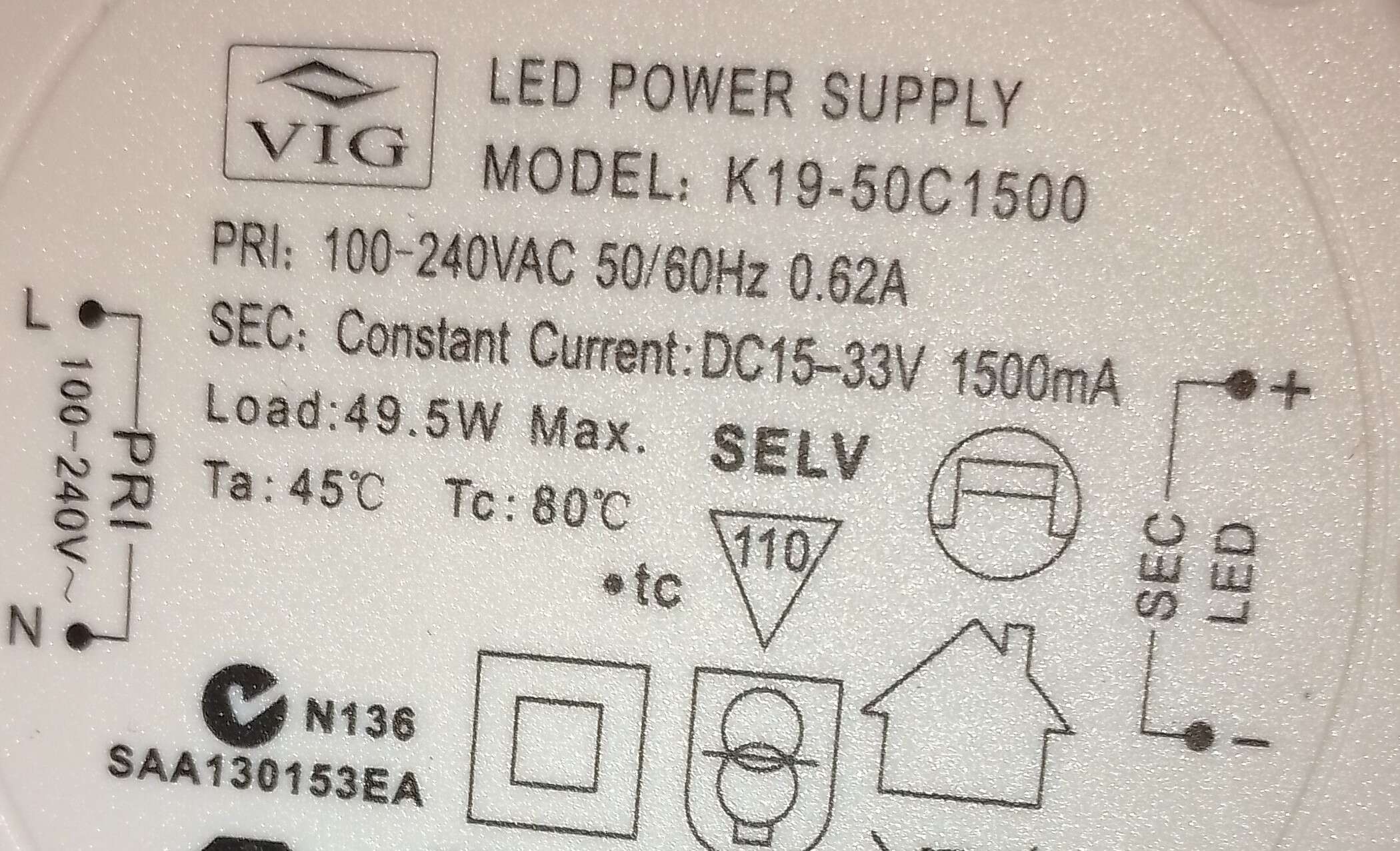 Dein Netzteil ist eine Konstantstromquelle, die 1500 mA bei einer Ausgangsspannung von 15 bis 33 liefert.